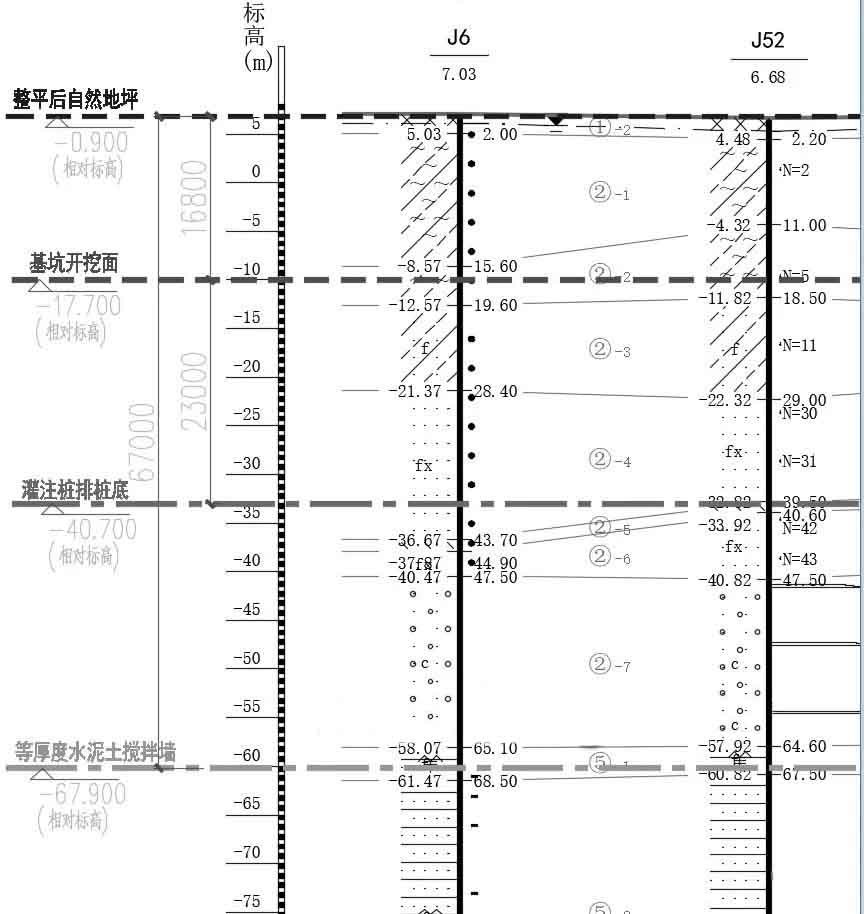 (2)地層復雜,需穿過約20米厚標貫值N>40的⑦2砂層。