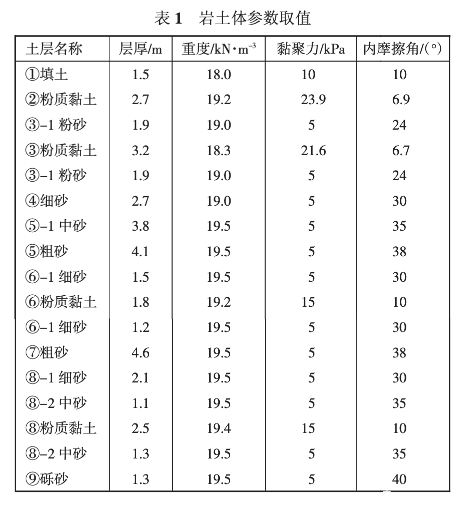 該工程場地是由河流沖積形成的河流侵蝕堆積地貌,屬松花江漫灘,上部地基土主要由黏性土、粉砂、細砂組成,下部主要為中砂、粗砂層,底部為白堊紀粉砂質(zhì)泥巖.場地土層參數(shù)見表1.