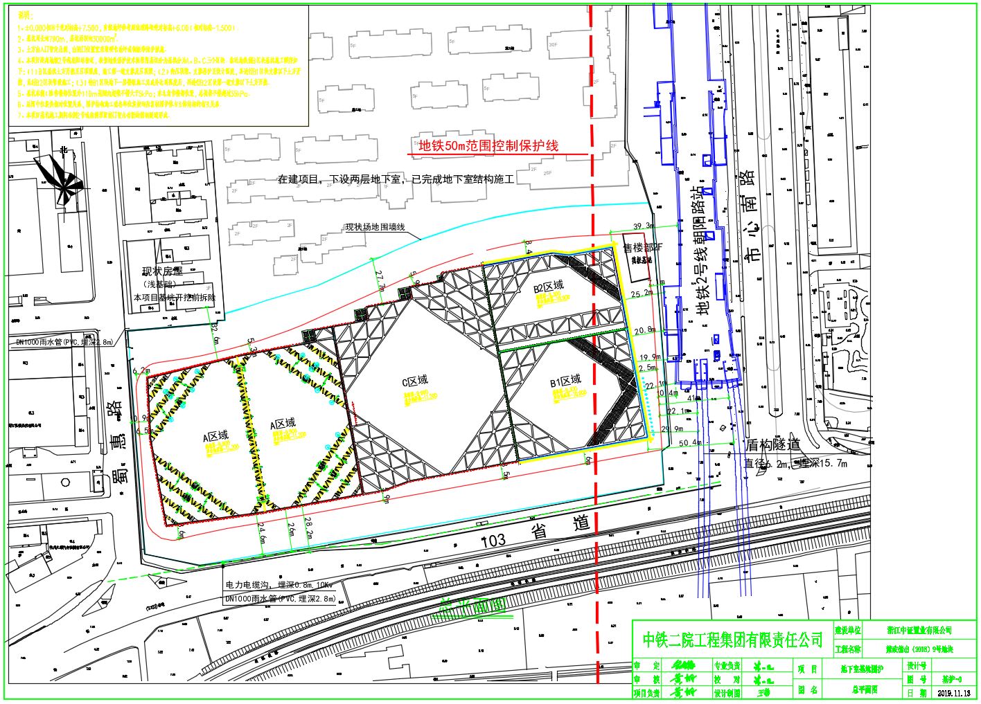 項目西側采用基坑圍護結構采用SMW工法+一道雙拼支撐的圍護方式,東側臨近地鐵,采用TRD工法做止水帷幕,采用MJS高壓旋噴工法做重力式擋墻和接頭處加強。