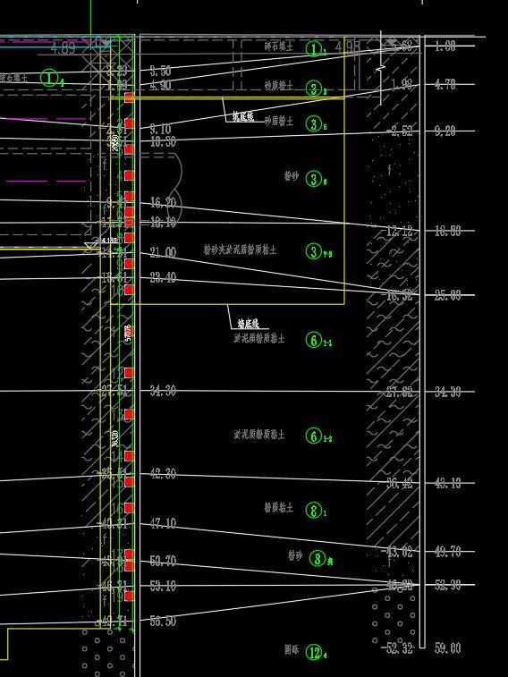 8、基坑開挖前應對渠式切割水泥土連續墻的成墻質量檢驗。檢驗內容包括硬芯取樣、滲透系數測試等等,檢驗數量為6個孔,每條邊一個孔位。且沿深度方案每延米取芯數量不應少于1組,且在基坑坑底附近應設取樣點。具體取樣位置由有關各方根據實際施工情況共同商定。
