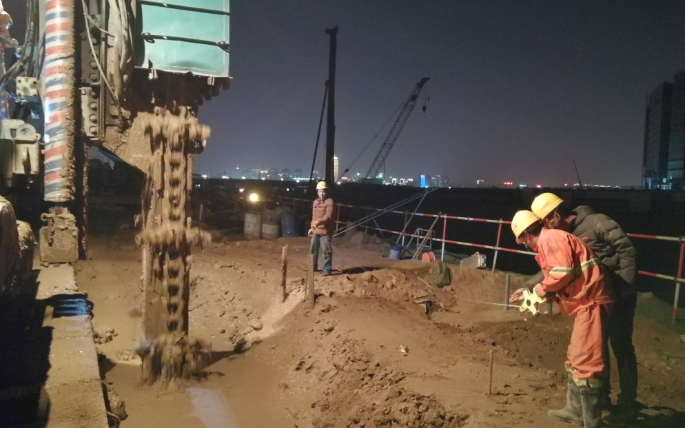 (n)當成墻攪拌結束或轉角時,起拔切割箱的時間應控制在4h之內進行(宜配置大噸位吊車和振動器),根 據切割箱長度、吊車起吊能力以及操作空間因素,將切割 箱分割成2~3段拔出,應邊分解邊拔除。施工過程必須嚴格控制切割箱的拔出速度。拔出切割箱的過程中,注入漿量要能夠補充切割箱拔出的體積,以防止混合泥漿液面下降。