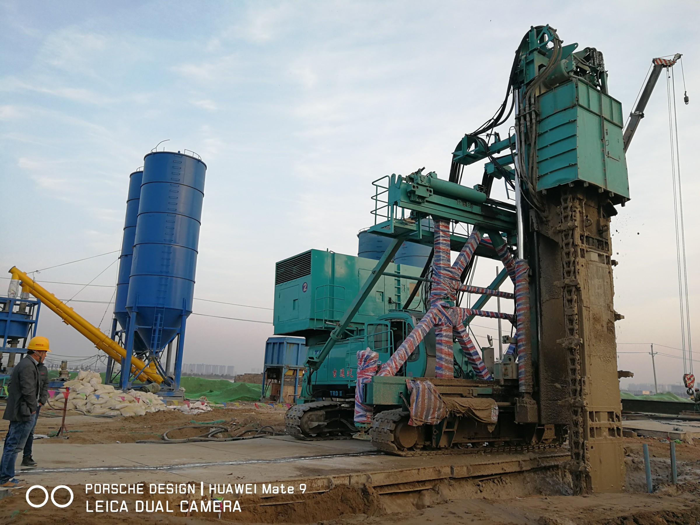 (a)要做好各項施工前的準備工作,如清障、修筑施工便道,鋪設鋼板測量放線定位,特別是對施工便道的確認,必要時對施工便道地基進行加固,以確保履帶樁機推進的安全和成墻的垂直度。